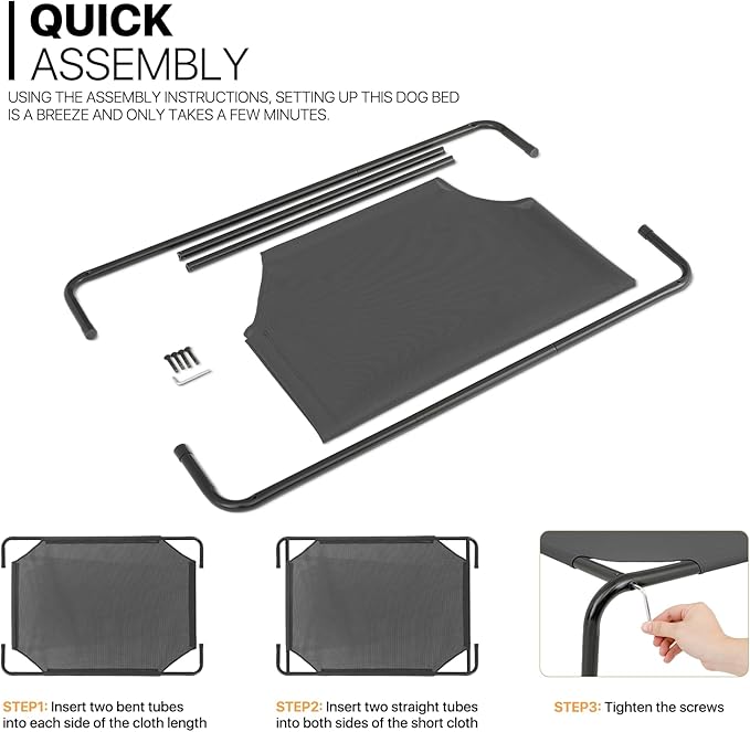 - Strong & Easy Assemble Dog Raised Bed - This sturdy dog bed is made of strong steel metal structure and has 4 anti-skid feet, making it ready for your beloved furry pets. It is also easy to assemble without extra tools, and by following the instructions, all the assembly can be finished by your hand in a few minutes.