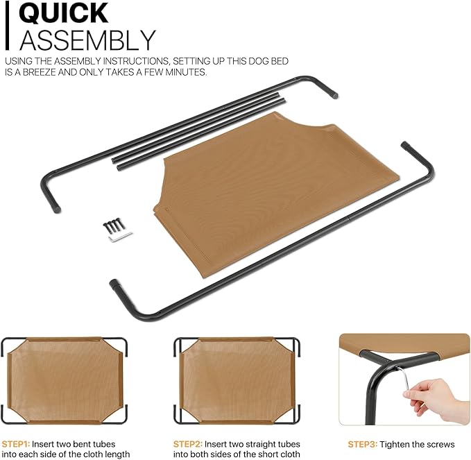 - Strong & Easy Assemble Dog Raised Bed - This sturdy dog bed is made of strong steel metal structure and has 4 anti-skid feet, making it ready for your beloved furry pets. It is also easy to assemble without extra tools, and by following the instructions, all the assembly can be finished by your hand in a few minutes.