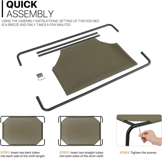 - Strong & Easy Assemble Dog Raised Bed - This sturdy dog bed is made of strong steel metal structure and has 4 anti-skid feet, making it ready for your beloved furry pets. It is also easy to assemble without extra tools, and by following the instructions, all the assembly can be finished by your hand in a few minutes.