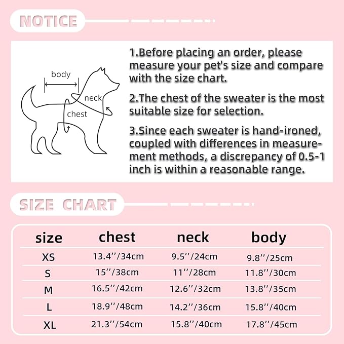 - Pure Color: Pure bright color, classic jacquard pattern, regardless of gender, suitable for all small and medium dog breeds to wear, please check the size we provide as a reference, if you like a tighter fit, you can choose a smaller size, if you like a looser fit, you can use the provided size instead.