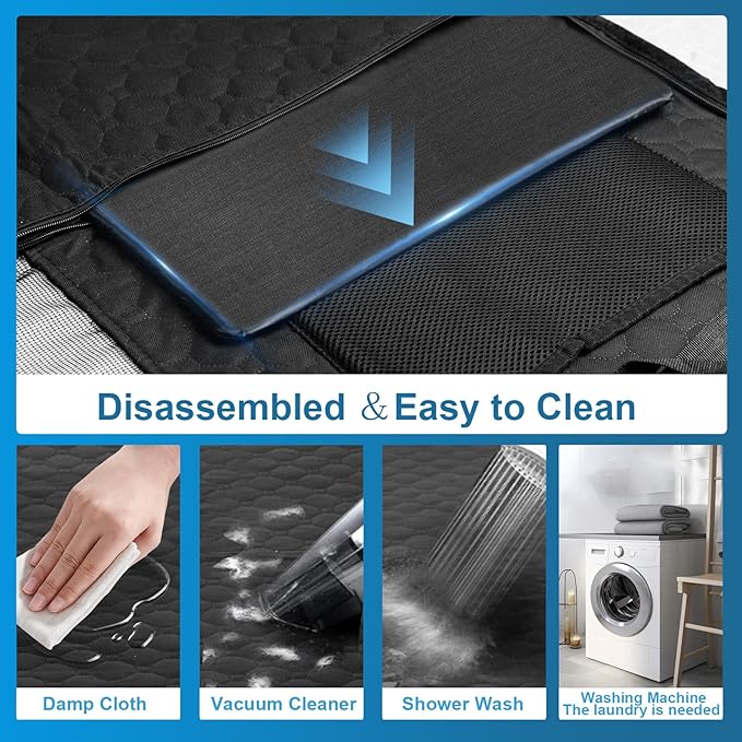 - Durable and Functional Design: The dog car seat cover for the back seat is water-resistant, ensuring easy cleaning when dirty. The non-slip design on both sides of the dog hammock ensures stability, preventing the dog from sliding. The wear-resistant fabric ensures longer durability and better quality for the car bed.