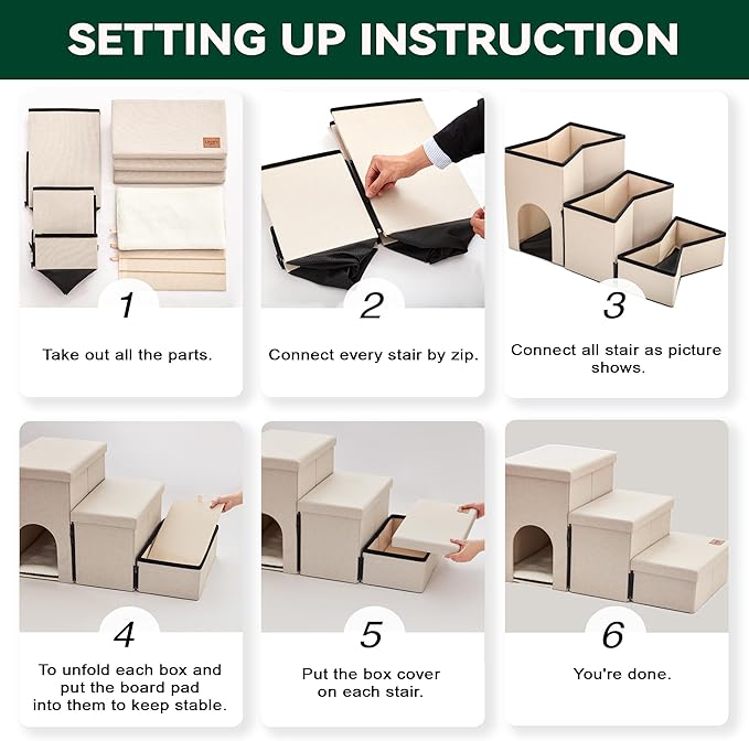 - PRACTICAL STORAGE FUNCTION - This folding pet steps is not only a ramp, but also a storage box for dogs or cats objects.With 3 large-capacity storage space under the dog cat step,you can put dog's clothes,traction,blankets and nursing tools or other pet accessories in for finding easily.