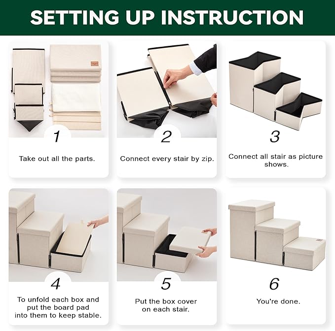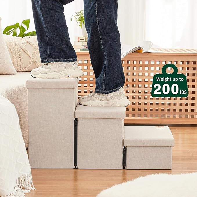 - ADJUSTABLE – Why use 3 steps when you only need 2? With zip, you can separate the stairs to adjust the height.Size of overall three level style:29.5”Lx17”Wx17.7”H.