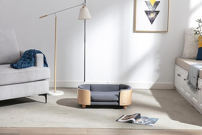 - 【UNIQUE MODERN DESIGN】 Cat bed unique warm-embrace bent wood barrier design. Solid natural OAK wood surface and solid natural OAK wood legs. Beautiful and sturdy, capacity up to 220 lbs.