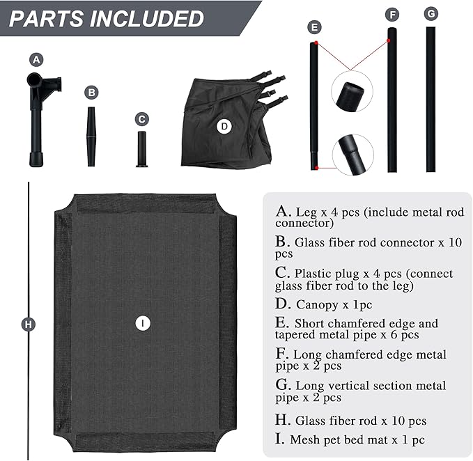 - Elevated Dog Cot with Canopy: Unlike an ordinary camping dog bed, the off-the-ground bed design keeps your pets cool by increasing airflow from all sides. Offers joint relief for your pets that struggle with lying on hard ground as well.