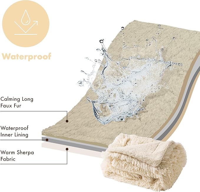 gogobunny Waterproof Plush Long Faux Fur Pet Throw Blanket Ultra Soft Fluffy Bed Couch Cover Washable (40x50 Inch 1), Beige)
