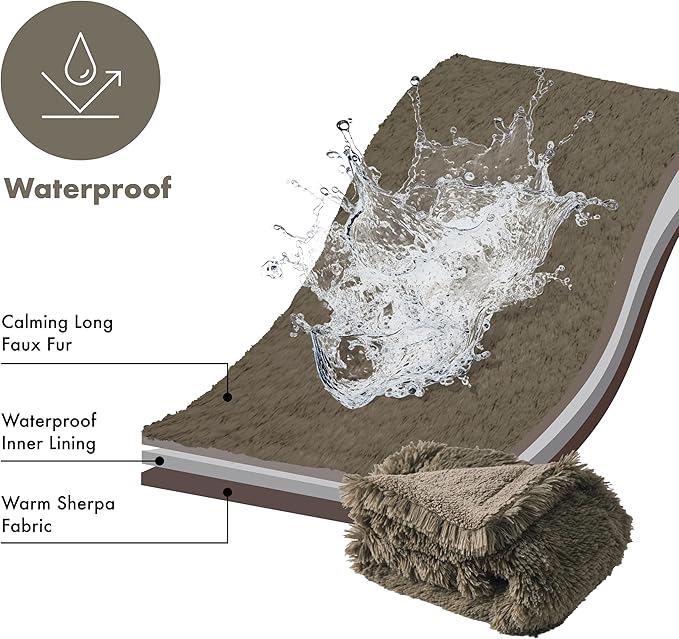 gogobunny Waterproof Plush Long Faux Fur Pet Throw Blanket Ultra Soft Fluffy Bed Couch Cover Washable (40x50 Inch 1), Stone)