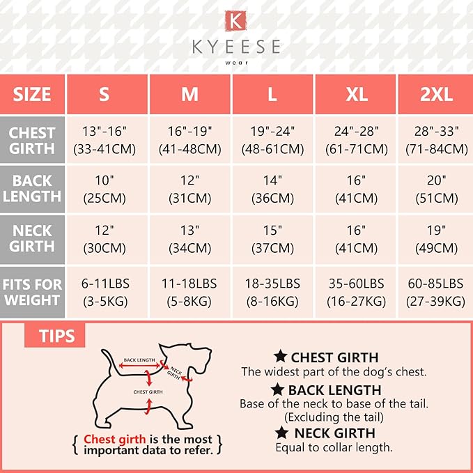 • IMPORTANT NOTICE--Read the size table carefully before placing order and chest girth is the most important data to refer. Different brands have their own size standards, so do not make choice according to the previous experience. We do recommend you to measure your pets regularly
