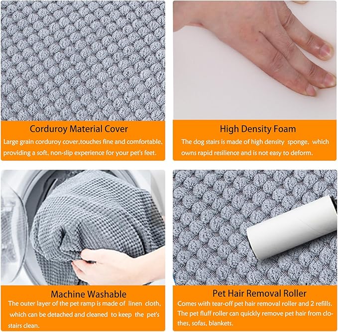 - Pet Hair Remover Roller: Dog Stairs package includes a pet hair remover roller and two hair rolls to help you easily remove hair from your pet ramp and keep it clean at all times.