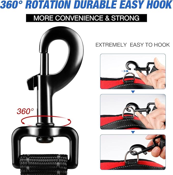 - 360° Swivel Attach - Prevents bungee cord from getting tangled while allowing your dog freedom to move and enjoy the ride. This is smartly designed with durable metal alloy and rugged heavy duty nylon. It will last and look good for years of improved safety and ultimate convenience.