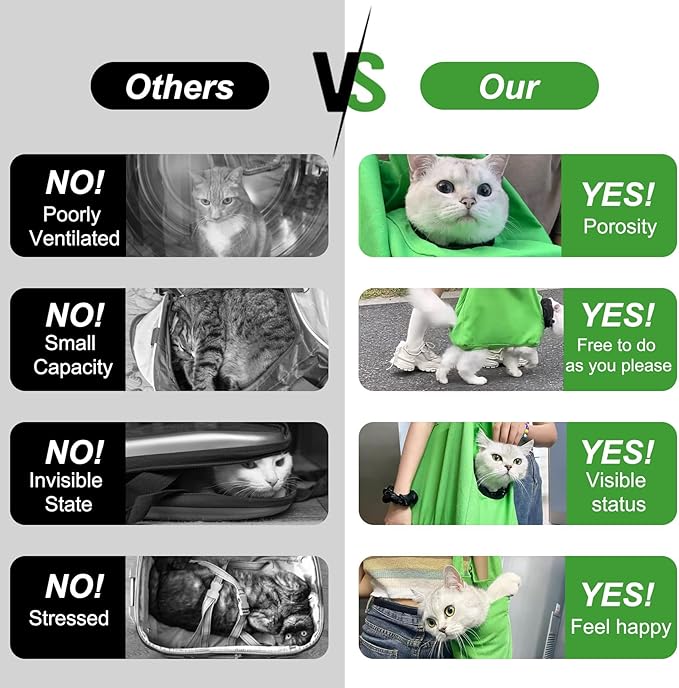 - Convenient Pet Supplies: The probe design of the cat sling carrier makes it easy to check. The extendable design of the limbs in the pet carrier for cats allows for nail clipping and trimming leg hair is easier