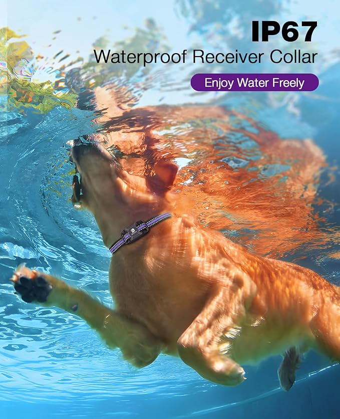 - IP67 Waterproof Receiver: This electric dog collar can be used in any weather and any condition thanks to the IP67 waterproof design of the receiver (You’ll have to keep the remote control away from water).