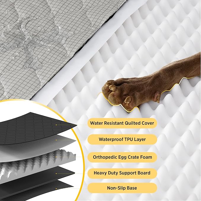 - Soft & Cool Canine Comfort: Our 2-inch thick egg crate foam isn't just comfy—it's a game-changer for your dog's joint health. Unlike the flimsy alternatives, our premium padding ensures your pup enjoys first-class comfort. Plus, the strategically placed mesh window enhances air circulation from front to back. This ensures they stay cool, no matter how long the journey.