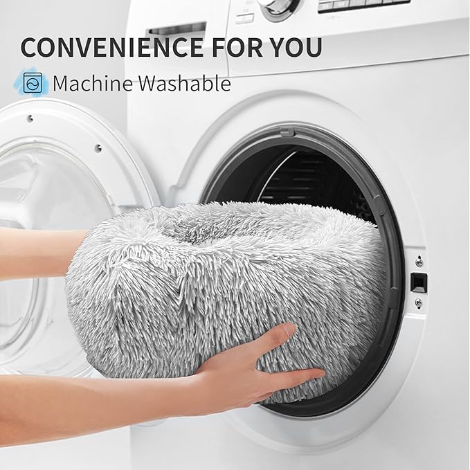 - 【SIMPLE TO CLEAN】The donut dog beds are designed for convenience and can be easily cleaned by machine washing and drying on low heat. This easy-care approach helps keep the bed fresh and comfortable for your pet, making maintenance a breeze. After unpacking, a quick shake will help the bed regain its full shape and fluffiness, ready for your dog to enjoy.