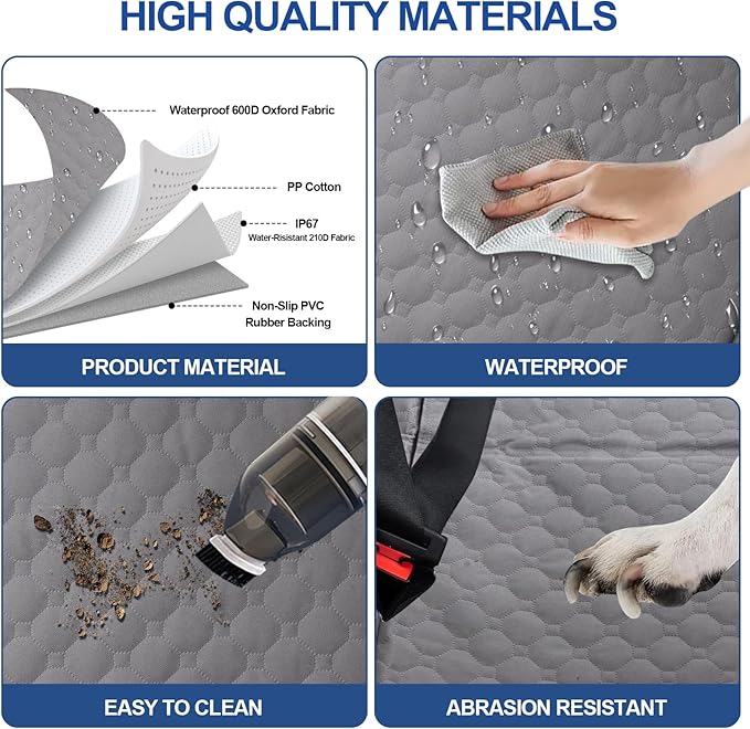- 【PROTECT YOUR PET'S SAFTEY】: 100% scratch-proof and waterproof, fully protecting your car seats from scratches, dirt and pet drool.It can completely cover your back seats and doors with easy installation buckles.You will not need to worry about stains, seats or doors damages while driving with your honey pets any more.
