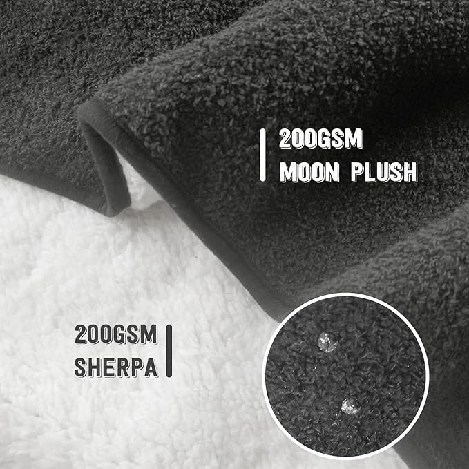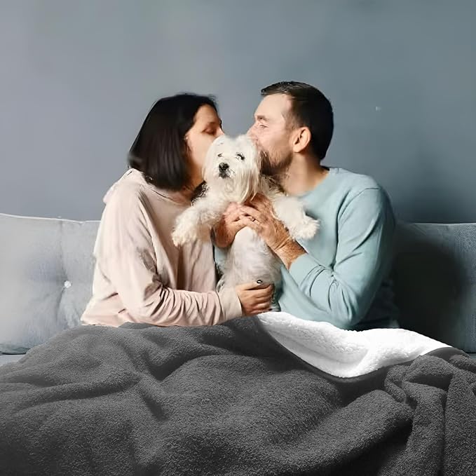- 【Material and Design】 This 3-Layered waterproof blanket is made with one layer moon plush,one water-impermeable membrane to ensure its waterproof function, and one layer of sherpa fabric to ensure softness and comfort.It is both soft lightweight, warm and waterproof. Also, we designed two classic cover colors to make the waterproof blanket a great decoration for your couch or bed - gray or navy.