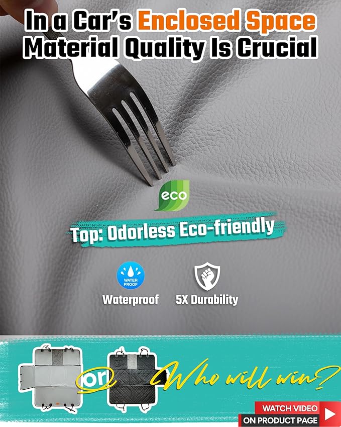 - 【Material Better For Inside Cars】In a car’s enclosed space, it’s important to use high-quality material. EverShield Leather (ESL) is a sofa-grade leather, making it an excellent choice even for dog car seat covers inside cars. Discover why EverShield Leather is the perfect material for your back seat extender for dogs. Watch the video on the details page to see why ESL is perfect for inside cars.