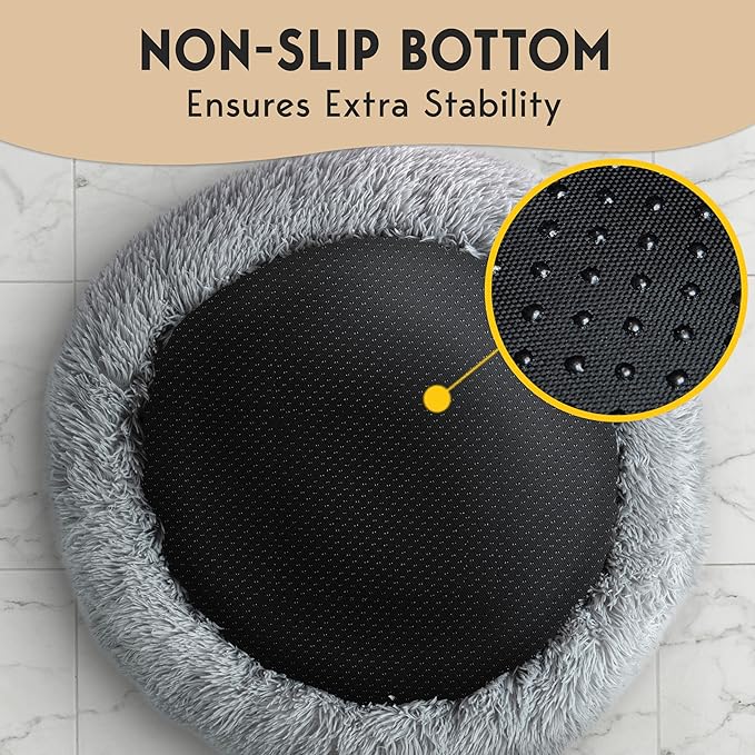 • 【Soft and Cozy】- Indulge your furry friend in supreme comfort with our luxury faux fur calming dog bed. This eco-friendly furniture being 20% more plush than any other in the market, offers unmatched softness that pets adore, while the super-soft extra cotton filling ensures exceptional support. Designed for ultimate relaxation, the bed provides a warming environment where your pet can rest comfortably. The non-slip PVC dot fabric bottom ensures maximum stability, enhancing safety for your pet.