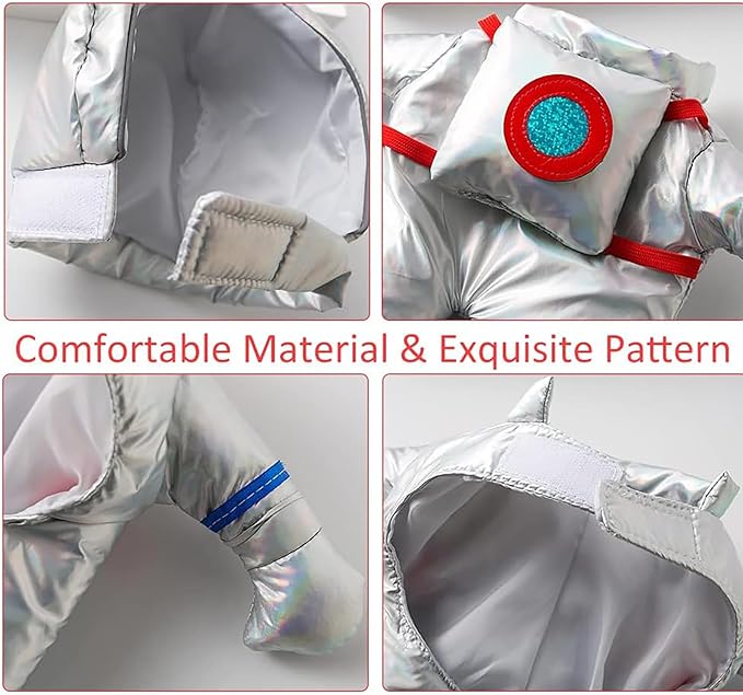 - 【Astronaut Dog Costumes Design】Equipped with a cute astronaut patterns with laser silver color and exquisite styles, this space astronaut costume for small medium dogs will give your puppy or cat a fashion look, Halloween astronaut dog outfit is very suitable for decorating your pet in all kinds of festivals. Put on our space dog costume suit and let your puppy experience the wonderful feeling of walking in space, your pets can easily realize the dream of becoming an astronaut.