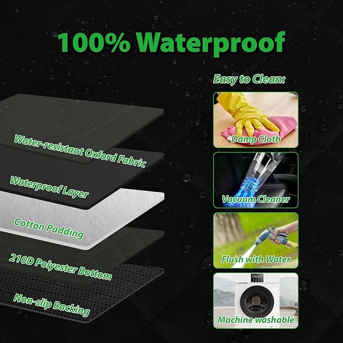- Waterproof and Non-slip: The dog cover uses premium waterproof fabric to block water intrusion into the seat. Non-slip backing and seat anchors prevent seat cover from sliding. Equipped with 4 adjustable headrest straps and covers, 2 seat anchors, and 2 Velcro to keep it in place.