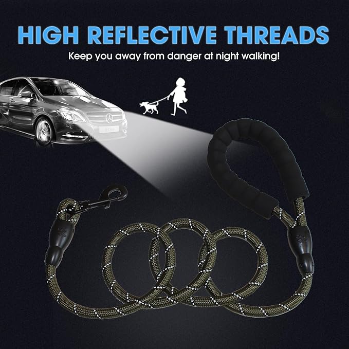 - REFLECTIVE FOR NIGHT SAFETY - Highly reflective threads dog leashes keeps you both safe and visible on your late-evening walks.
