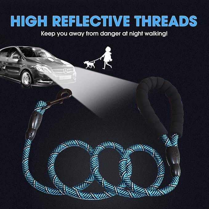 - REFLECTIVE FOR NIGHT SAFETY - Highly reflective threads dog leashes keeps you both safe and visible on your late-evening walks.