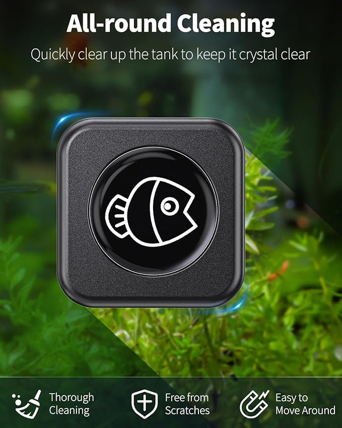 - Double-Sided Magnet Brush: Both cleaning pads are intended for wiping dust or slight marks inside and outside the tank. Thoroughly clean the surface to keep it crystal clear.