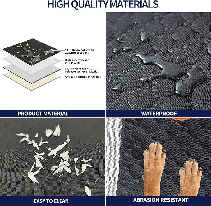- 【Waterproof and Easy-to-Clean Material】The surface layer of the seat cushion is made of sturdy 600D Oxford waterproof material, which is odor-free and can effectively prevent damage from pet claws. It also prevents liquids from penetrating into the car seat, protecting the cleanliness of the car interior. When cleaning the seat cushion, it can be directly laid on the lawn and rinsed or wiped with a damp cloth, making it convenient and fast.