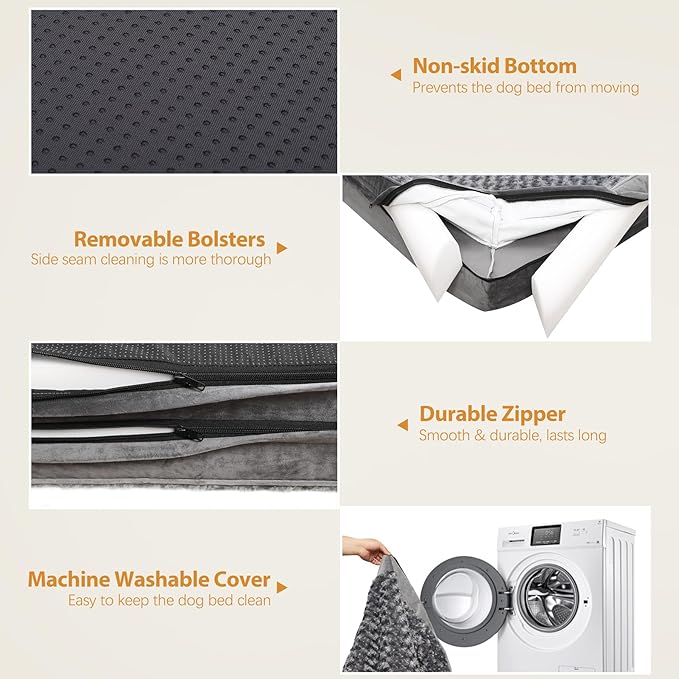 - Machine Washable & Easy disassemble - Thanks to the removble cover and bolsters,as well as the durable zipper,you can easily disassemble the bed without worrying about damaging it.Our dog couch can be washed by machine and maintain stretchability after times wash.The premium L-shaped and C-shaped zipper on the outer cover, which is smooth and durable, makes it very easy to remove.The upgraded fabric and reinforced stitches ensure the cover remains as good as new after multiple washes.