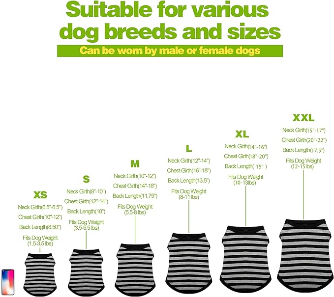 - Design: The shirts come in a sleeveless tank top design that allows for easy movement and flexibility. The striped patterns add a stylish touch to your dog's wardrobe, making them look cute and fashionable.
