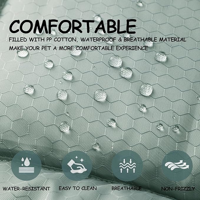 • Durable & WATERPROOF: The dog bed is sewn from water-resistant grip-resistant 600D Oxford fabric, but it is not recommended for excessive chewers.Which can easily wipe off the surface of water droplets or pet pee.