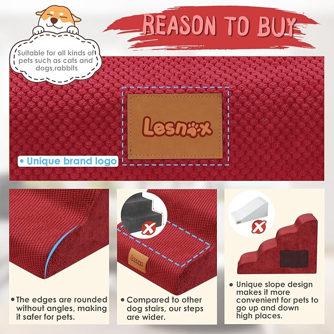 - Designed for short legged pets: The slope design allows pets to go up and down the stairs better. Especially for pets with leg injuries or older. The design of the steps is wider than the steps of traditional dog steps. It avoids both the steepness of the ramp and the pressure on the pet's joints from right-angle stairs.