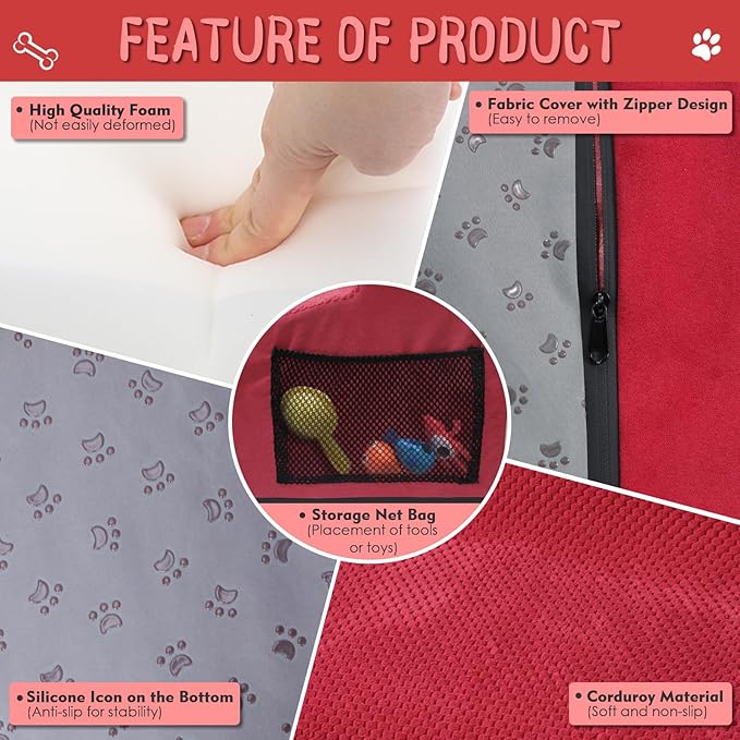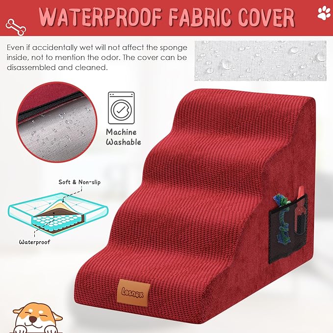 - Waterproof cover: The surface of the cover is corduroy with a built-in waterproof layer. Corduroy can increase the friction between pet's paws and pet steps. Waterproof cover can protect the sponge. Even if the pet accidentally urinates, it will not leave the smell on the cat stairs again. The bottom design silicone made of dog paw prints. Both cute and can do non-slip to maintain stability. The cover is designed with a zipper and is removable and machine washable.