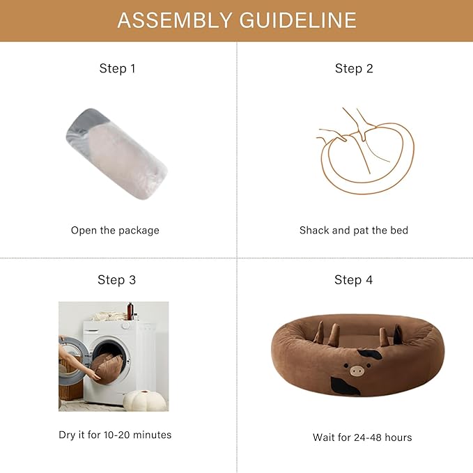 - Instructions for Use: After opening the package, let the cute dog bed have 24-48 hours to fully expand before using it. This will ensure your pet enjoy a more comfortable pet bed.