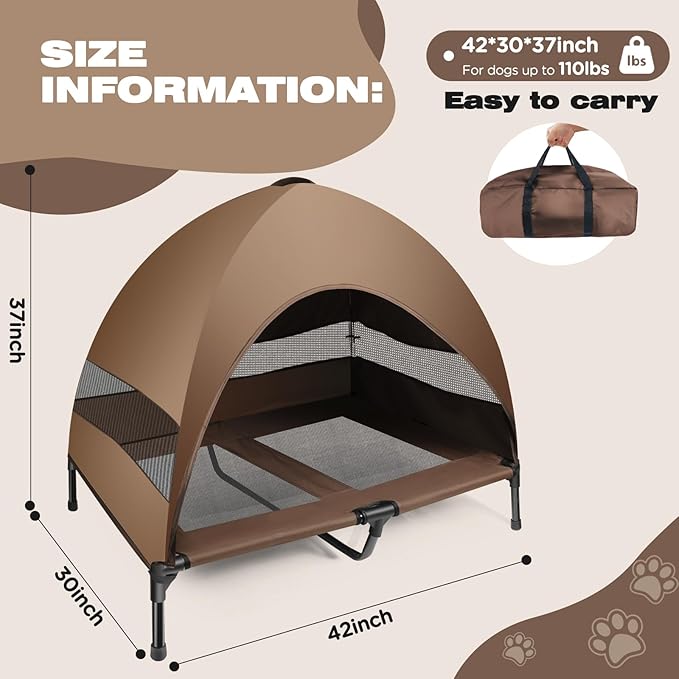 - 🐶🐾【Larger Sun-shade Canopy】Our dog cot bed comes with a sunshade canopy made of three-sided Oxford fabric and mesh, offering sun protection, improved airflow, and UV resistance to ensure your furry friend can rest comfortably outdoors during the summer.