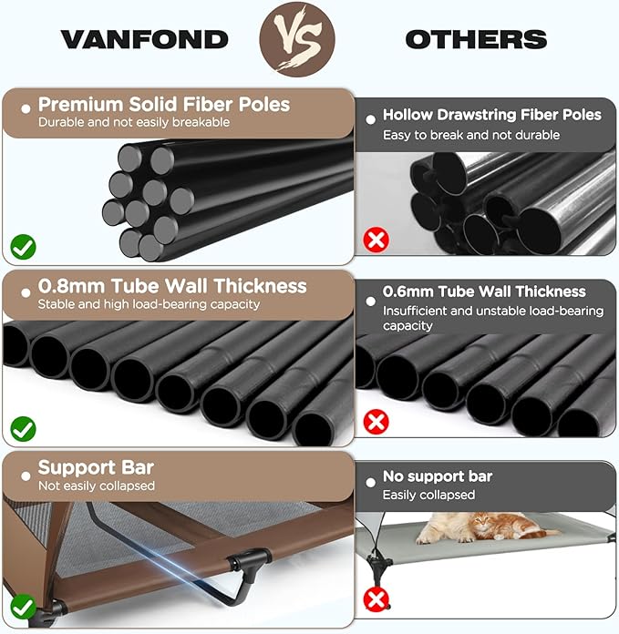 - 🐶🐾【Easy to Assemble】Easy Assembly: The sunshade canopy support rods are made of solid fiber poles for added durability. With clear assembly instructions, this cooling elevated dog bed with canopy can be set up in just 20 minutes, providing a comfortable resting space for your furry friend without hassle. (Note: Follow the assembly sequence as per the instruction manual for a secure connection of upgraded bed frame accessories.)