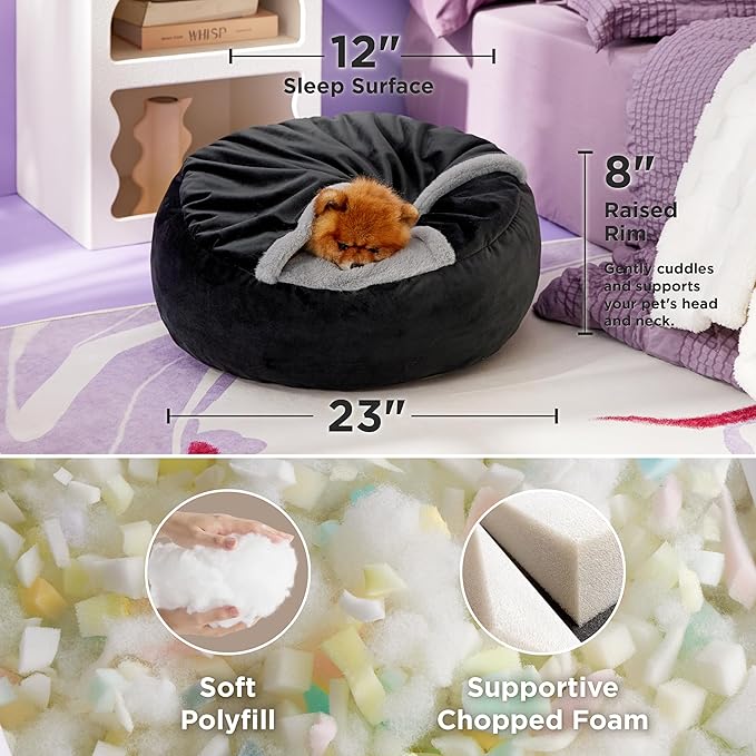 - Dreamy Comfort for Every Snooze: Treat your pet to unparalleled comfort with Lesure's Faux Fur Burrow Bed. Expertly crafted with a 2:1 ratio of chopped foam to polyester fiber, this bed is the perfect blend of support and softness. Ideal for pets of all life stages, it offers a snuggly spot that's as easy to clean as it is cozy!