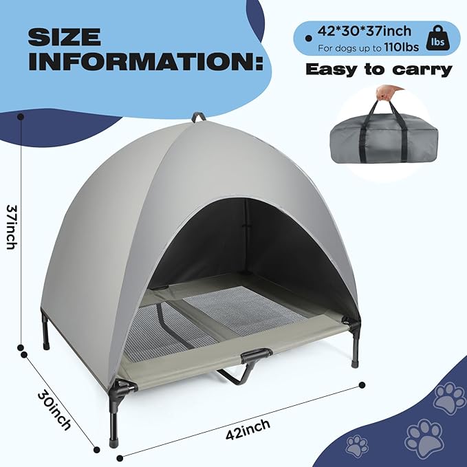 - 🐶🐾【Comfortable and Cool Fabric】Constructed with 600D Oxford fabric and breathable Teslin mesh, this outdoor dog canopy bed is hair-repellent, chew-resistant, and easy to clean by wiping or rinsing. It is elevated 8 inches above the ground to keep pets cool and comfortable while staying away from dust.