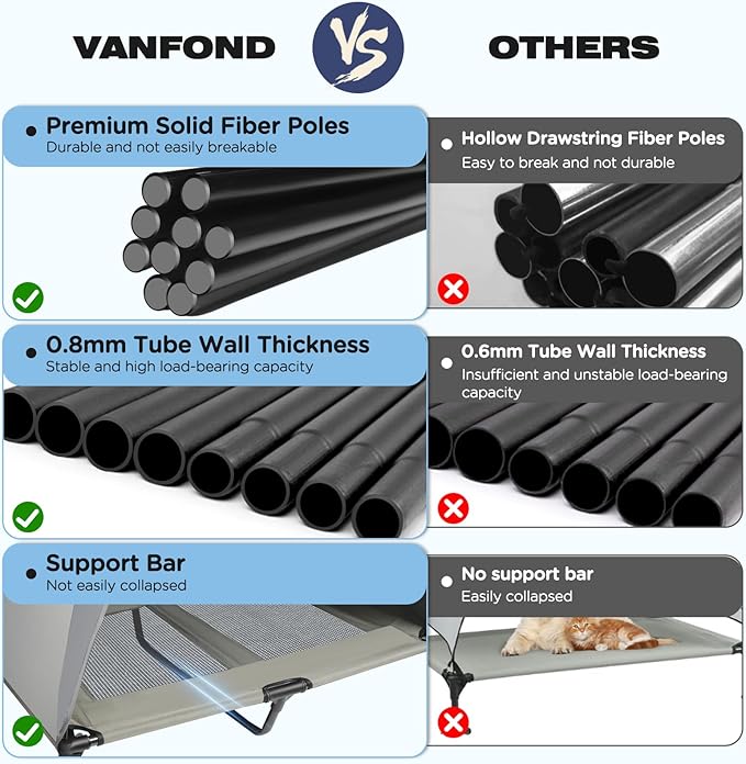 - 🐶🐾【Easy to Assemble】Easy Assembly: The sunshade canopy support rods are made of solid fiber poles for added durability. With clear assembly instructions, this cooling elevated dog bed with canopy can be set up in just 20 minutes, providing a comfortable resting space for your furry friend without hassle. (Note: Follow the assembly sequence as per the instruction manual for a secure connection of upgraded bed frame accessories.)