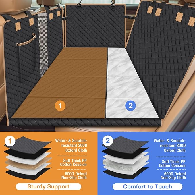 - 【No More Pets Falling】The back seat cover for dog features sturdy bottom board, which is strong enough to support your dog with dog safety seat belt to prevent your pet from sliding during drive.
