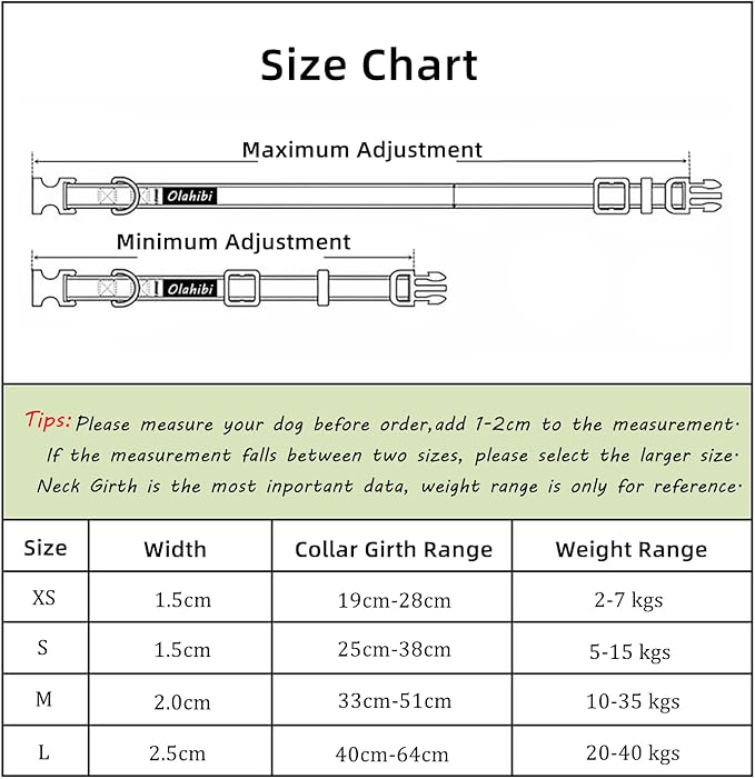 - 🐕5【Warm tips】Please measure your dog girth and add 1/2" to choose the proper size.The Collar is washable but it’s better put them in a washing bag to protect the machine.Don’t let the dog to bite the webbing, afterall it's textile.