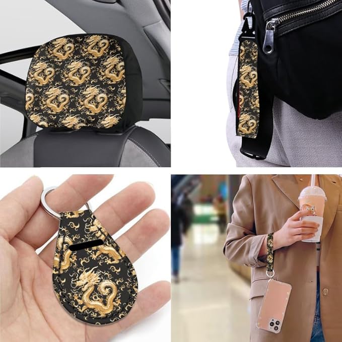 Chinese Yellow Dragons Car Seat Covers Artistic Dragon Seat Belt Strap Cover Folk Arts Seat Belt Strap Cover