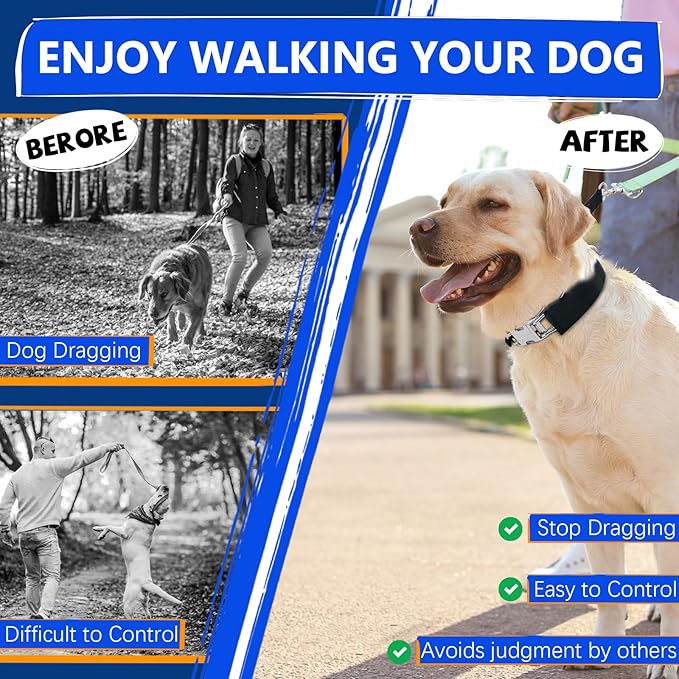 • Safety and Comfort: This dog walking collar is gentle on your dog. The smooth, rounded edges prevent chafing, and the cushioned sleeve adds an extra layer of comfort during walks and training sessions.In addition, the equipped cloth bag makes this collar more fashionable and safe.