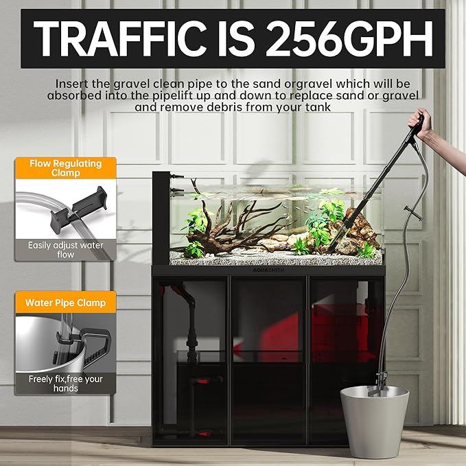 - AQUASMITH Fish Tank Water Changer, Gravel Vacuum Cleaner for Small Aquariums, Vacuum Siphon Water Changer Pump Sand Cleaner, Manual 256GPH, Siphon Water Changer Adjustable Length.