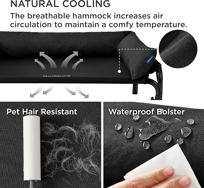 • Durable & Hygienic Materials: Constructed with a sturdy iron frame and heavy-duty Teslin fabric, this pet bed ensures long-lasting use and easy maintenance. Water-resistant bolster and pet hair-repellent mesh allow for simple cleaning with just water or a damp cloth.