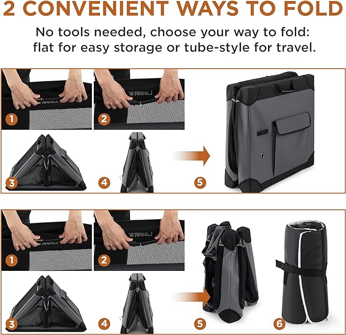 - Easy Assembly, Storage, & Maintenance: The convenient and simple design allows for quick assembly within 2 minutes. The crate can be folded into two different ways, catering to various indoor and outdoor settings. It features a water resistant design with waterproof fabric, making it easy to clean with just a damp cloth. The removable and machine washable mat simplifies care.
