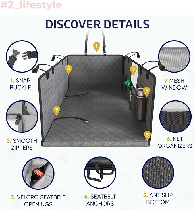 - Safety First: You can secure your dog with the included dog seat belt. For the safety and comfort of dogs, the dog car travel bed has upgraded all accessories, including 6-layer thickened hard bottom, heavy duty headrest strap and buckle with lock, and durable zipper. 2 velcro seatbelt openings, seat anchors, and non-slip backing keep your dogs from slipping.