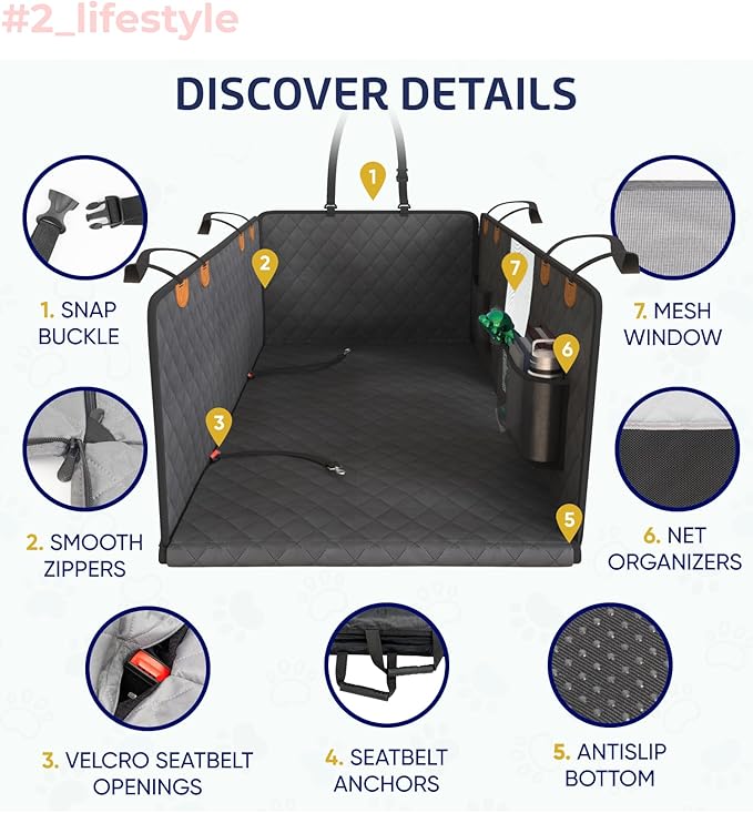 - Safety First: You can secure your dog with the included dog seat belt. For the safety and comfort of dogs, the dog car travel bed has upgraded all accessories, including 6-layer thickened hard bottom, heavy duty headrest strap and buckle with lock, and durable zipper. 2 velcro seatbelt openings, seat anchors, and non-slip backing keep your dogs from slipping.