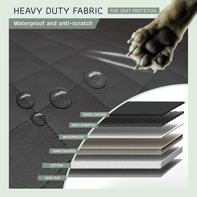 - Ultimate Comfort: The padded hard bottom is built in 6-layer protection to make your dogs feel much more comfortable while traveling in the car. The hard plate is covered with 2 layers of 35D sponge to enhance comfort, and held in place by premium non-woven fabric, so it's easy to remove for easy cleaning of the dog car seat cover.