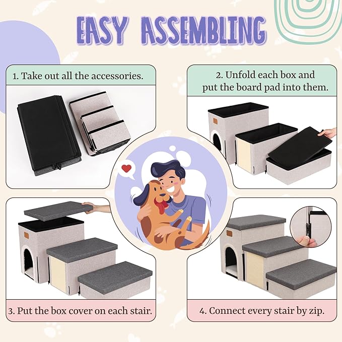 - EASY ASSEMBLY: The dog stairs for high beds are simple to assemble with detailed instructions provided. These pet stairs for small dogs can also be easily folded flat to store, making it a convenient addition to your home
